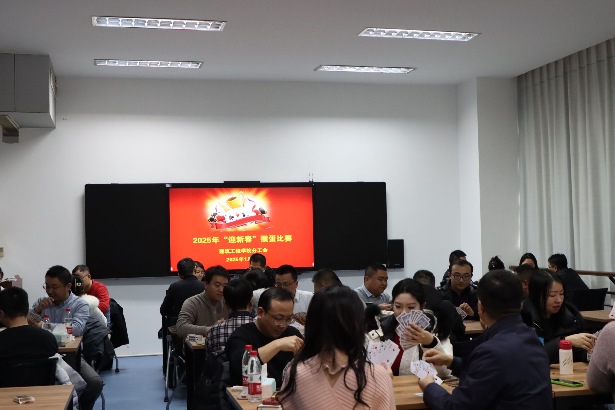 岁末将至,新春临近,为丰富学院教职工的文化生活,激发教职工队伍的团结拼搏精神和工作热情,1月8日,建筑工程学院分工会在强毅楼407举办“迎新春”掼蛋比赛。