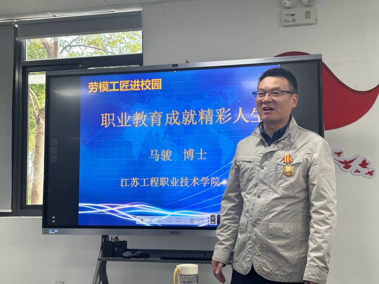 10月24日,由校工会主办,航空与交通工程学院党总支承办的“劳模宣讲进校园”活动在海门校区一站式学生社区举行。校工会主席、关工委秘书长程莉,张謇创新创业学院副院长王小红,航空与交通工程学院党总支副书记陈益飞,辅导员和学生代表40余人参加活动。